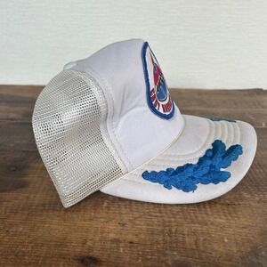 AMOCO East Anschutz Plant trucker hat in white with embroidered logo and accents. This cap features a classic mesh back for breathability and an adjustable snapback closure for a customizable fit. Perfect for casual wear or as a collector's item.