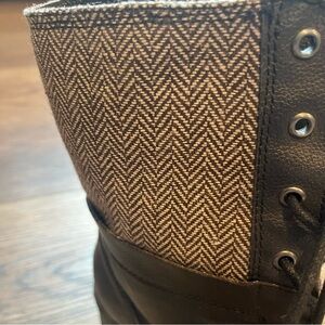 Experience the perfect blend of style and durability with these Kelsi Dagger black combat and moto boots. Featuring a classic lace-up design, these boots are crafted from high-quality materials for a rugged yet sophisticated look. Mixed material fabric pattern on top.