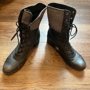 Kelsi Dagger Black & Grey Women’s Leather Lace Up Combat Moto Boots Size 10