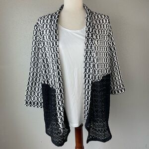 Stylish linen blend jacket measuring 22 inches armpit to armpit laying flat and 28 inches in length from shoulder to hem.