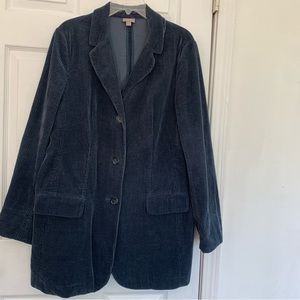 Stylish blue corduroy jacket. Features a classic collar and button closure. Perfect for layering.