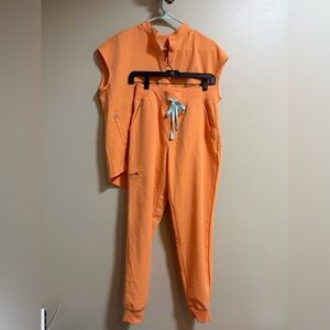 Cozy cream sweatshirt and shorts set with stylish script detail. Minor wear