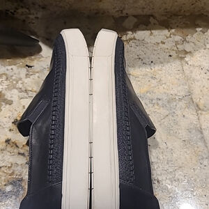 Vince 1"platform. Black leather slip ons. The supple leather will compliment any look, whether going to a business meeting or out running errands.