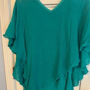 Casual yet elegant green neck angled flattering green blouse. XL
