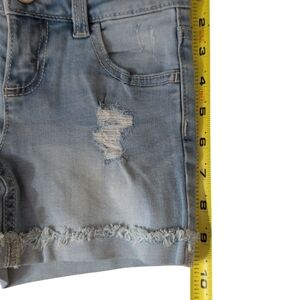 Stylish and comfortable light blue denim shorts. Girls size 7. I have many sizes in the same pair fray may be a bit different than in the photo. Thanks for looking and have a great day.