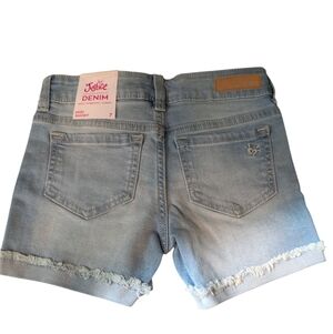 Nwt Justice Midi Denim Short Light Wash Frayed Soft Stretchy Comfy Girl Kids 7
