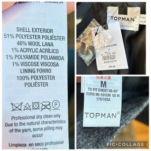 Topman Gray Wool-Blend Overcoat with Black Buttons Men’s Size Medium