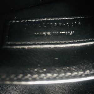 Removable padlock with leather case; key fob snaps into interior of bag for storage.
