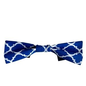 Hand Crafted Royal Blue Patterned Dog Bow Tie Cotton Fabric Collar 6” Accessory