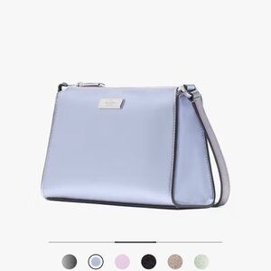 This elegant Kate Spade shoulder bag in a soft metallic lavender hue called Candied Flower features a structured rectangular design, perfect for everyday use. Our crossbodies are perfect if you want to carry your important things without all the bulk. Plus, your hands are free to keep up with all your group texts and to grip that vanilla latte. Crafted from textured leather, it boasts gold-toned hardware and an adjustable strap for versatile styling. Beautiful, lively summer bag!!