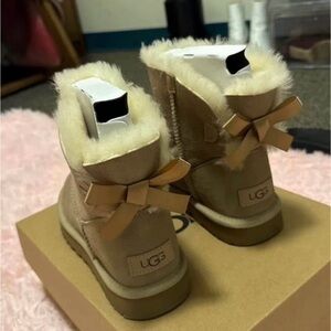 Adorable UGG baby boots in tan with a cute bow detail. Perfect for keeping little feet warm.