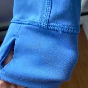 Light blue hoodie with full-zip front. Soft and cozy for kids.