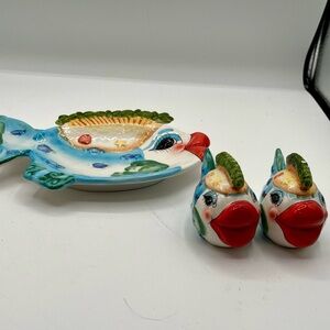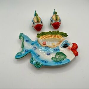 Colorful Ceramic Fish Decor with salt and pepper shakers