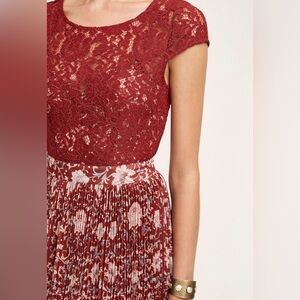 Anthropologie Women’s Arcadia Red Lace Floral Midi Dress size 0
