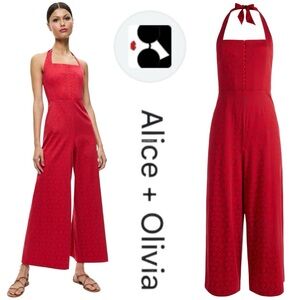 Alice + Olivia Red Halter Jumpsuit Wide-Leg Elegance