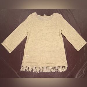 Joie Annalie Cream Fringed Sweater Women’s Size Medium Boatneck Linen Wool Blend
