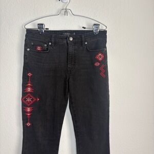 Lauren Ralph Lauren Black Label Southwestern Tribal Aztec Embroidered Jeans Sz 8