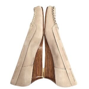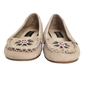 Coldwater Creek Chic Cream Moccasins Embellished Beaded Wedge Heel Detail Sz 6M