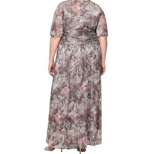 SL Fashions Womens Plus Printed Metallic Surplice Long Dress Taupe Size 20W NWT