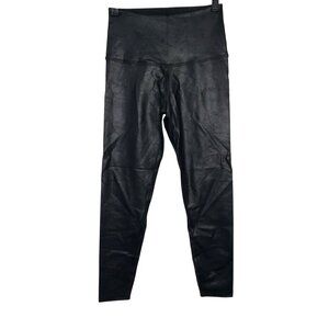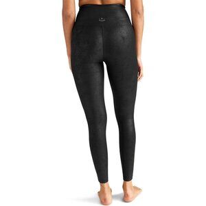 Beyond Yoga Leatherette High Waisted Midi Leggings in Black Leatherette Foil Sm