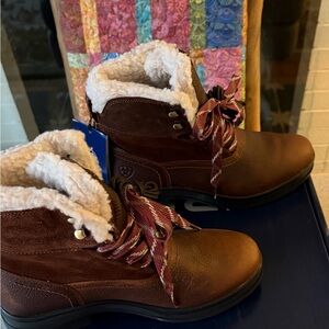 Cozy and durable winter boots by Ariat. Features a warm fur lining and sturdy sole. Ideal for cold weather.