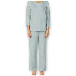 Midnight by Carole Hochman, sage lounge set, ribbed pajama set, womens loungewear, cozy sleepwear, soft knit pajamas, wide leg lounge pants, relaxed fit lounge set