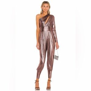 Shine in this stunning metallic one-shoulder jumpsuit. Perfect for a night out, this piece combines elegance with a modern twist.