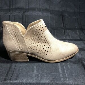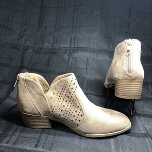 Cityclassified Western Ankle Taupe Faux Suede Tan Size 7 Booties 1.5" Heel