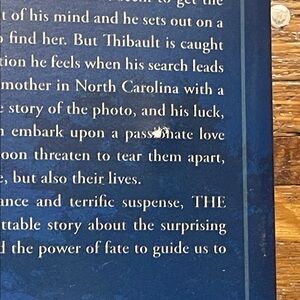 Blue cover with a serene night scene. A must-read novel by Nicholas Sparks. Some damage to pages in middle of book, sold as is see photos