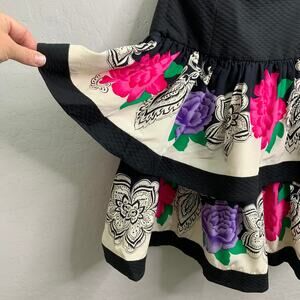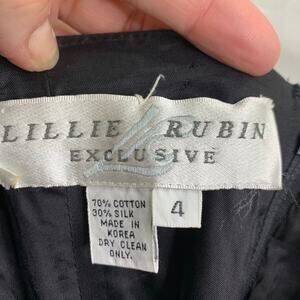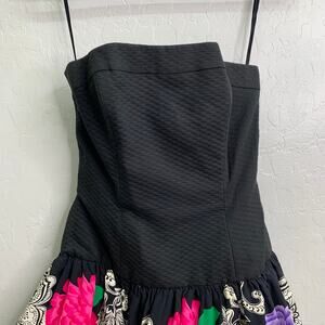 VTG Lillie Rubin Womens 4 Silk Floral Ruffle Bottom Poofy Dress Strapless 80s