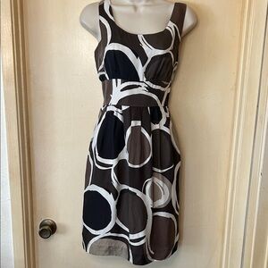 INC International Concepts 100% Silk Black and Tan Floral Midi Dress size 2