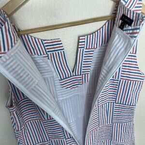 Talbots Red Blue Seersucker Patchwork Sleeveless Shift Dress 4