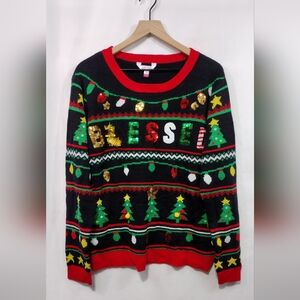 NWT No Boundaries Sequin Blessed Ugly Christmas Sweater Womens 3X Multicolor