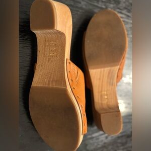 Stylish brown leather slide sandals. Perfect for casual wear. Excellent condition, display sample NWOT.
