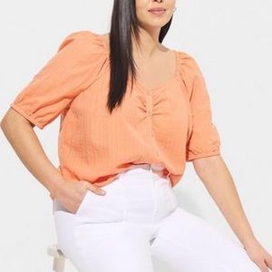 TORRID Papaya Punch Seersucker Button Front Crop Top