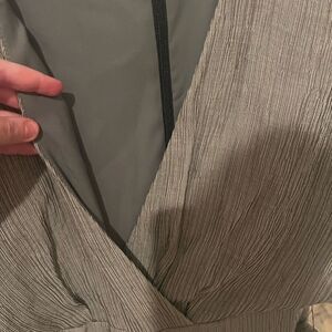 Keepsake jumpsuit with flutter sleeves in a textured gray fabric, size Small