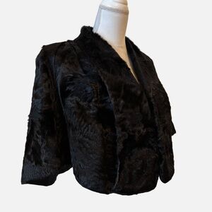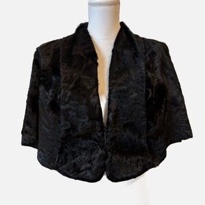 Vintage Karakul Lamb Fur Wrap Cape Jacket Shawl Black