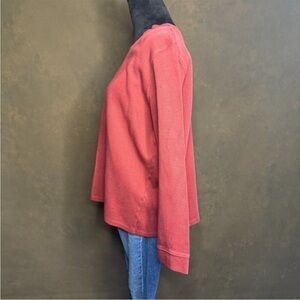 Cozy and classic Orvis women’s 100% cotton long sleeve pullover in a warm washed red color.