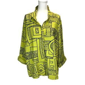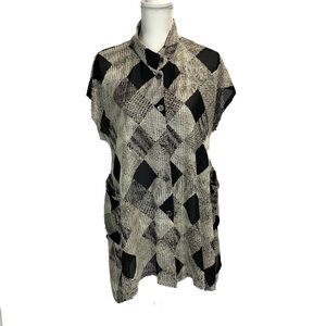Gudrun Sjoden Women XL Black Velour Tunic Top Polka Dot Trim Pockets A Line