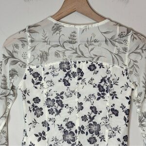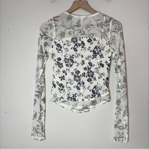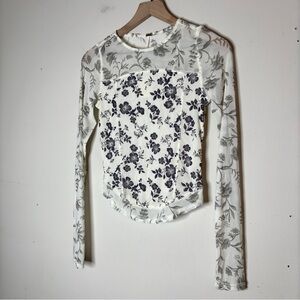 Free People White Blue Gray Floral Bettys Garden Sheer Long-Sleeve Top Sz S NWT