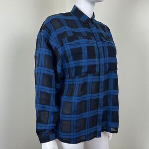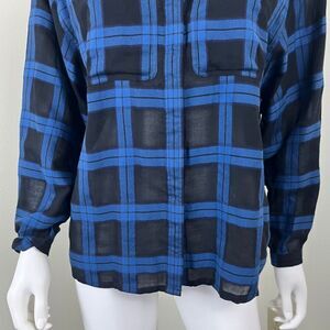 Burberry Brit Womens Size S Blue Black Plaid Cotton Flannel Boxy Blouse NEW Top