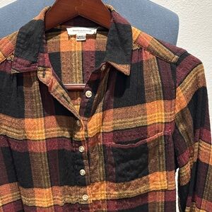 Stylish plaid shirt with button-up front. Features a classic collar and chest pocket.