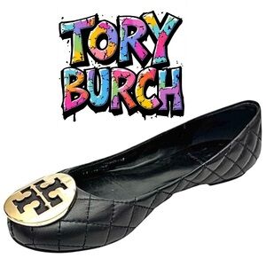 Tory Burch Women’s Ballet Flats Shoes Black Quilted Leather Size 6.5 M Pre-Owned