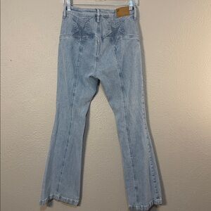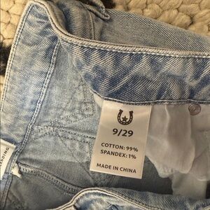 In great condition, with cool unique detailing. Tagged as size 29. Measurements: waist 15.5 inch; full length 40 inches; inseam 28 inch. Mid rise.