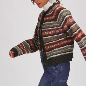 Basin + Range Fair Isle Stripe Wool Blend Crewneck Cardigan