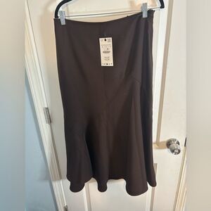 Zara Brown asymmetrical Midi Skirt size L NWT