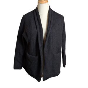 Open front cashmere cardigan to throw over a dress or even a tee. Good condition...left pocket has some separation .needs a couple stitches. Full atretch 20 Bust Across Pit to Pit 20 Waist Across 20 Hips Across 22 Length 525 America Cashmere Black Open Front Cardigan