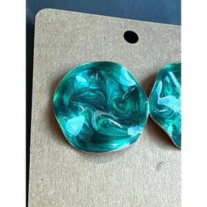 Add a touch of vintage charm to your jewelry collection with these beautiful green swirl enamel earrings! The wavy round design and stud style make them a unique and eye-catching accessory. Measuring approximately 1 inch in diameter, they are the perfect size to make a statement without being too overwhelming. These earrings are in excellent condition and ready to wear. Don't miss out on the opportunity to own these stunning vintage earrings!