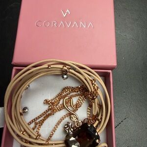 Enhance your style with this chic bracelet featuring tan leather and gold chains, highlighted by a dazzling Topaz Crystal