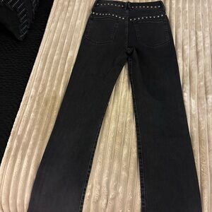 Chic black jeans with stylish studded details. Straight leg design for a modern look.